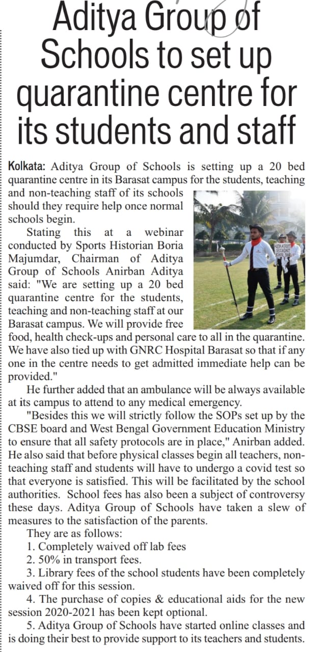 Aditya School Of Sports On Twitter In The Newsroom Aditya Academy Group Of Schools To Set Up A Quarantine Centre For Its Students And Staff Courtesy Northeastcolor Dainikjugasankha Mediaspotlight Newsroom Schoolnews Quarantinecentre